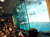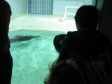 パフォーマンスエリアの床に丸い透明の床をのぞくと 下がみることができる。。ちょうどのぞくと ラッコの芸の真っ最中でした |