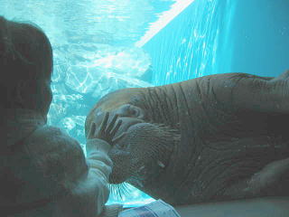 ![]() ![]() ←セイウチ↑人なつこいぞ。。ひげが一杯あるんだね |
