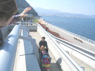 ![]() 大タッチプール 周辺。 とても景色いいよ〜目の前に広がる別府湾 背にそびえるに高崎山 |