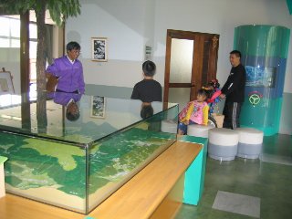 秋吉台エコミュージアム内 体感シアターで秋吉台の四季を学ぶ 山焼きの匂いがプ〜〜ン |