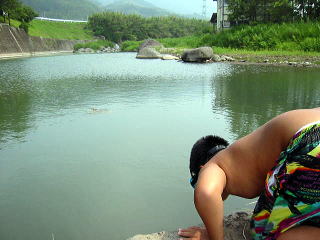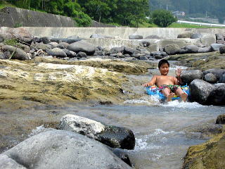 息子は重たいから、、けつが下についてあんまり流れません
