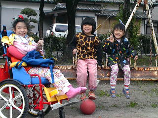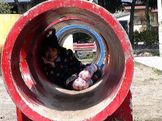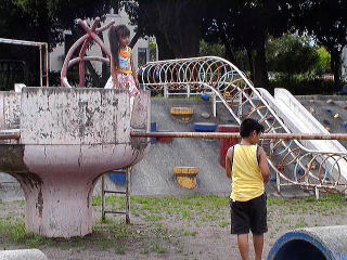 壁のジャングルジムなどを 上がると上は、回転する乗り物 わたり鉄棒などあります。 |