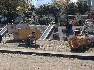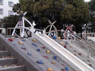 | わたり鉄棒 壁にジャングルジムっぽいもの すべりだい シーソー、回転する乗り物 ブランコ |