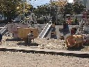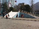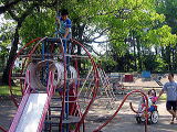 北石垣公園 (線路より2個山側の道 九州横断道路から一個別府より の道を入る) 2004年4月ごろ大型メイン遊具一部リニューアル 黄色いすべりだいや、真中(以前はジャングルジム) ににぶらさがり玉やネットに 変更されていました |