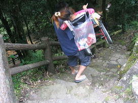 ![]() 美琴30キロ。。車椅子?キロ。。 お父さんがんばれ〜すべりそうな 緑コケ階段ありますので、絶対注意が必要 |