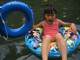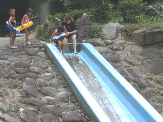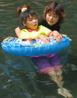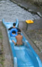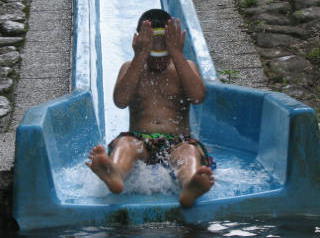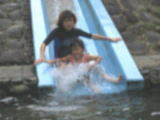 ![]() 浮き輪をケツに置いてすべると速いぞー こっちは気持ち深い。。(浅いプールの深い位) |