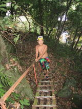 ![]() 最後の数歩。。の階段あり。。。車椅子はつらいっす。 上の歩道橋のようなところから降りるんですわ。 むこーの暗いほうが滝です。 |