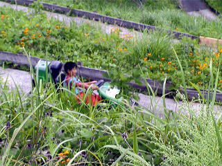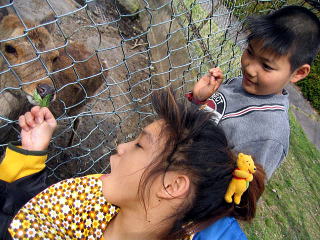 お散歩すると奥のほうに小動物。 そのへんの葉っぱをちぎって あげてもよし。えさも100円であります |