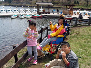 ここは、志高湖。ユートピアを過ぎると あります。 湖には、鯉がわんさわんさ えさをあげると大きな口をあけて 重なって群がってきます |