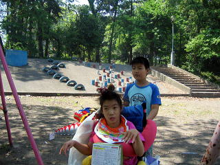 普通の遊具 となりが神社。 道路沿いにゲートボール場 側面に境川 |