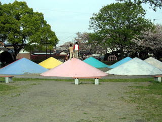 山のむこう、ブランコ シーソー、、そして 花見客あり。 |