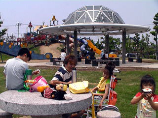 帽子みたいな屋根の下はベンチあり お弁当どうぞ |