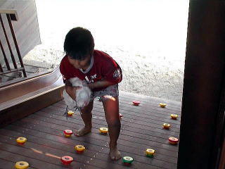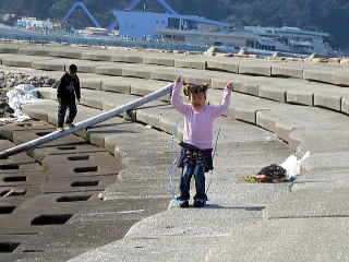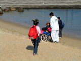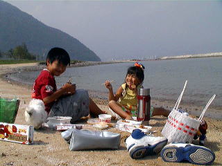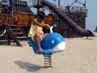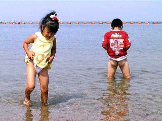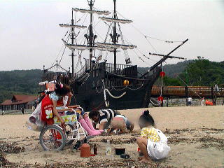 正直言って海水浴、、のわりには、水が汚いイメージが あります。 船の遊具があるので弁当持って砂遊び、水遊び むこうの人工島までのお散歩程度かなあ。 |