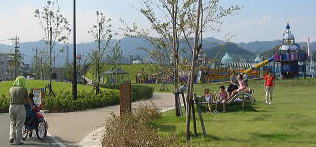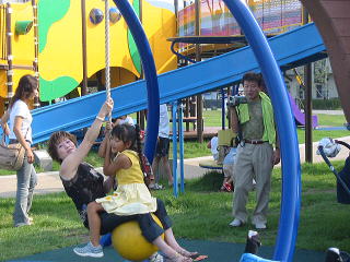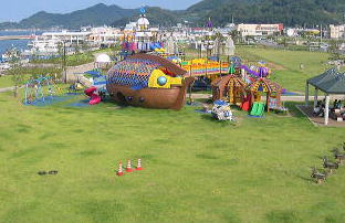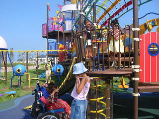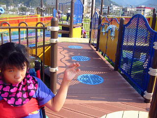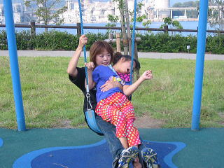 ![]() ぶらんこ三個。 後ろが海!! ながめいいぞー 後ろの海は釣りができるぞ |