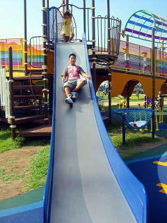 ![]() ![]() 一番上からは怖いですよ。せめて半分の場所から。。 おーおもしれ〜〜〜 |