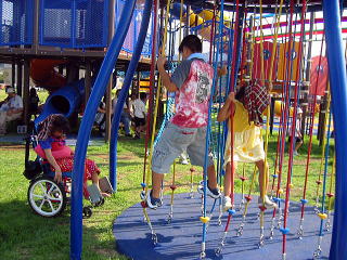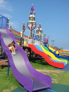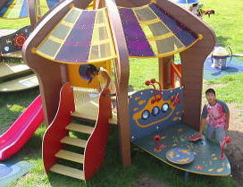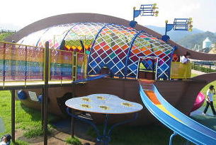 ![]() 虹色のお船左がスロープ。すべりだいはローラー |