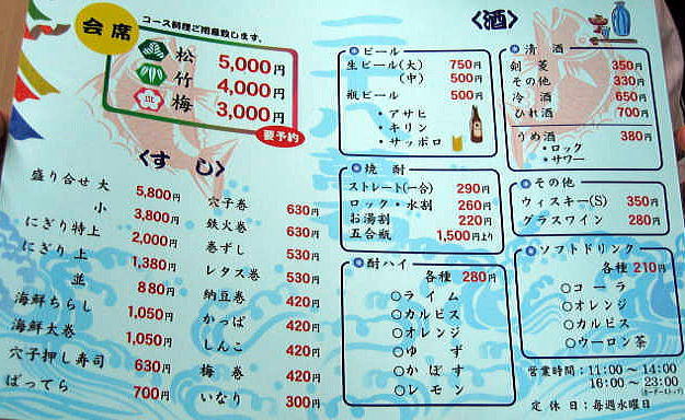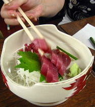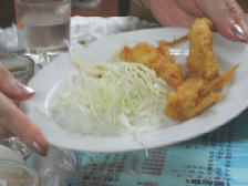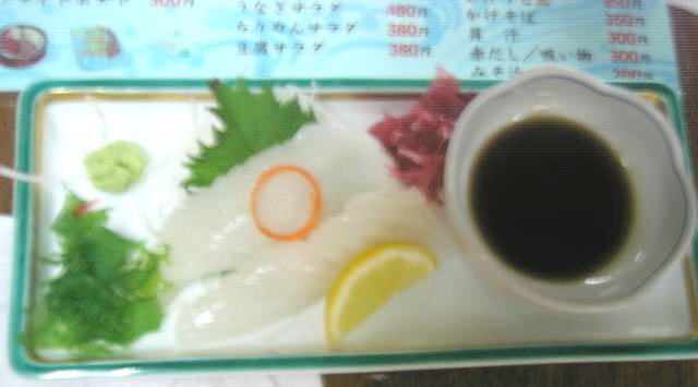 ![]() いかソーメン550円 ![]() 鉄火巻き630円(12個) ![]() 天丼800円のわりには量が「ちと すくねー」 ![]() へいお茶。大工さんみたい??(笑) |