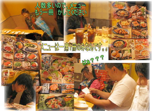 満員じゃないに、「メニューもう一冊かしてください」っち、言ったら