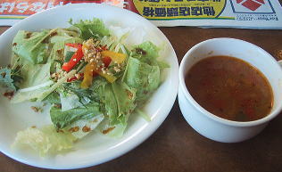 ランチメニュー注文 スープとサラダつきで670円