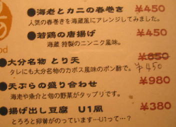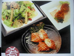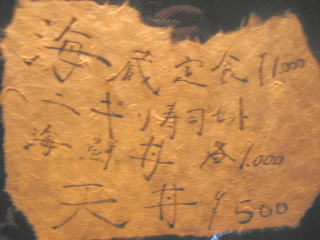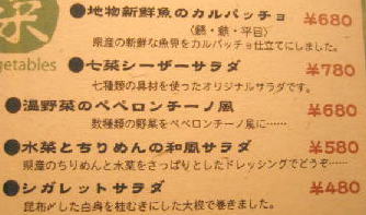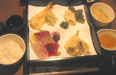 刺身 :えび天2 :白身魚、人参。茄子。ししとう。椎茸の天麩羅