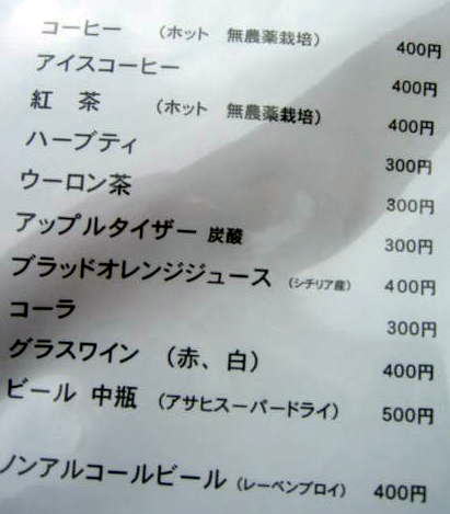クヌギの丘 のメニュー一部
