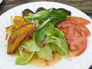 サラダとスパゲティ、、、本日スパゲティの麺、、ちっとゆであげ時間早かったみたいよ。芯あり(爆)