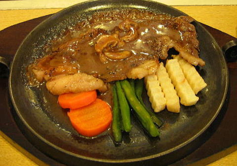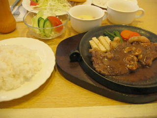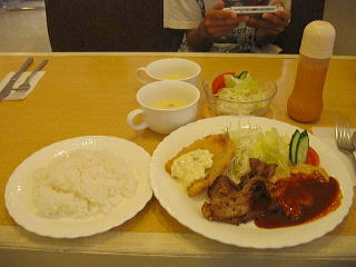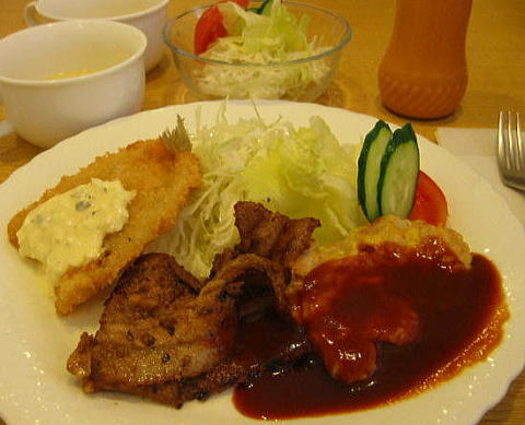むかーしからある「 マーチ」へ 行ってみる 日替わりが650円くらいやったかな、 豚しょうが焼きと 鶏にたまご巻いたようなのと キスのフライ 価格が良心的ってとこかな。 皇帝はステーキランチ1200円= ジョイフルの薄切りステーキよりは やわらかかった