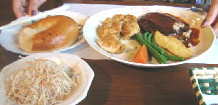 ソースが甘口。ハンバーグは柔らかかったです。