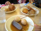 おでん1こ60円!これも安いよね!大根こんにゃく、てんぷら、ちくわ、たまご、 (すじは、なかったよ残念) |