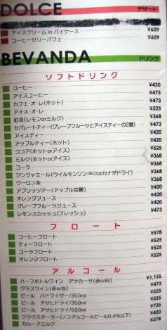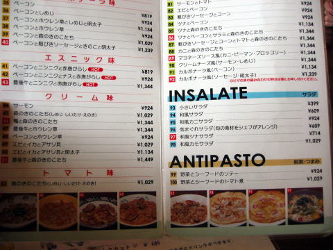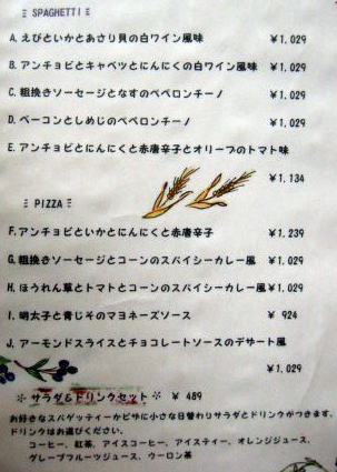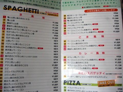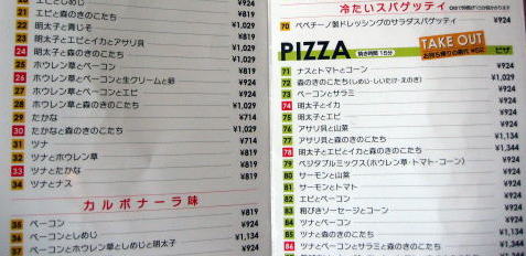 左のページが全部スパゲティメニュー:右も上半分がスパゲティ