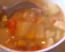 田舎風スープっち。あじは、シチュー味かと思ったらカレー味?スープで具沢山♪