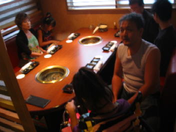 端っこで、肉に手が届かない。で あとは長ソファーなので