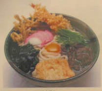 海老天、山菜、わかめ、かまぼこ、 とろろなど入ったボリュームたっぷり「八方美人うどん」