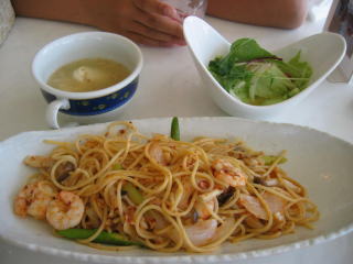 ハンバーグデミグラスと海老のエスニックパスタ注文