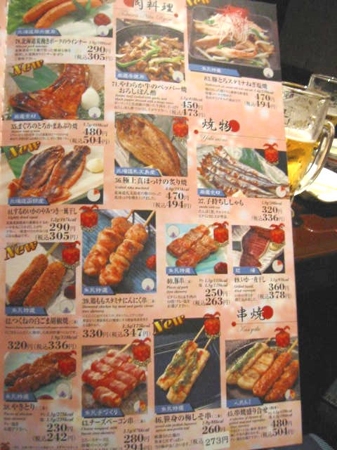 白木屋系列の店かな、多種類のメニュー。味値段とも若者向き