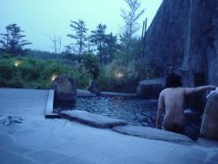 露天風呂はどんなもんじゃろ、あれ?まだ日が昇っちょらんきぃ良く写ってねぇー