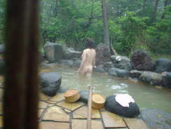 おねえちゃん、混浴露天風呂はどこなぁ 宿の奥まった所に"隠れ露天風呂"非常階段のドアーを開けると、なんと11段(。ヘ°)ハニャ