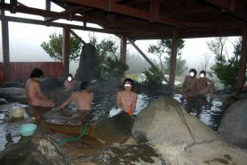 浴槽の周りは大きな岩で囲まれており、乗り移りには意外と楽でした。けっこう広くて17人くらいは楽に入れます。