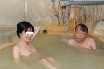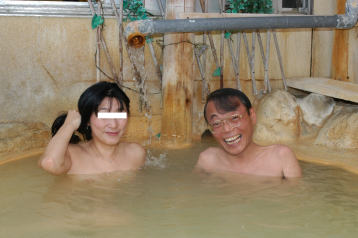 男女別の内湯と、混浴の露天風呂があり、男湯の更衣室から混浴露天風呂へ行ける仕組みとなっていた。鉄分が多いのか湯茶色系で華が浮き、湯の表面には成分が結晶化した膜も見られ、ぬるめの湯だったのでゆっくり浸かれ満足♪満足♪満足♪