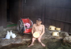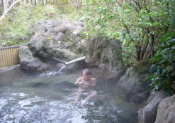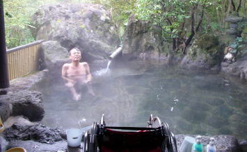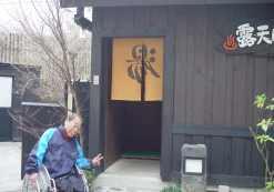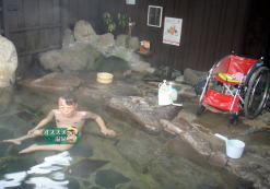 檜風呂・露天風呂・丸石風呂・切石風呂など一棟一棟を離れ形式で造っていた。一番人気のある丸石の湯、重さ10tの天然石をくりぬいた重みのあるお風呂が目的だったが見ていると露天風呂が目に付いたのでお願いしました。二段ほど段があるので手伝いましょうと親切に言ってくれましたがご無理をおかけしてはと思いおかん一人で大丈夫ですよ♪お気遣いありがとうございました。料金を支払い時間はと聞くと空いているので好きなだけ入りなさいと言われここでも心のバリアーフリーが感じられました。