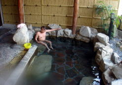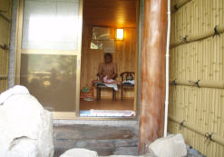 貸切露天風呂「弁天の湯」は二種類有り湯布院名物の「湯がき丸太」(切り出しの丸太を約10日間温泉に浸けて湯がいたもの)を素材とした湯殿は、宮大工の熟練した技と湯平温泉の誇る露天風呂の名工「麻生鹿之助」氏の力作だそうです。7人ゆったりと漬かれる広さがあり洗い場のスペースも広く、これで貸切とは贅沢すぎる。若女将さんより空いているのでゆっくりと入るように言われこれまた絶賛。