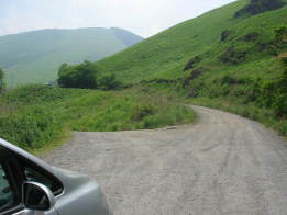 こりゃまた、すんげぇぇ石だらけの下り坂だわ、車椅子じ、と〜てん降りられんんんん。