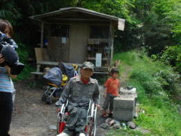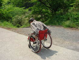 緑ん木にいっぺこっぺ囲まれち、自然そのものじゃったーーー。険しい道、こげなとこ車椅子は、しらしんけん無理・・・・・・・・・・。でんが、おかんにオンブされち、急な凸凹道をハァーハァー言うち、よだきぃぃぃぃ思いさせち、心臓が止まるんじゃねえか、心配しちょったわ。