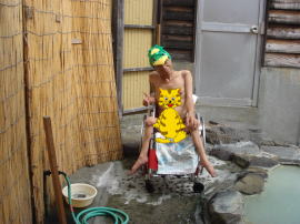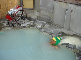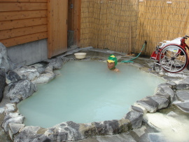 一つしか、ねぇぇがった、家族風呂が4つになっちょるわ、名前も奥みょうばん山荘変わっち、看板も外しち、しもうたんと、デッキみてぇぇぇモンが出来ち、土足禁止じゃけんど、優しい管理人さんが車いすんままでん、OKっち、優しいおもてなしだわ!中は真新しく木の香りがプンプンしちょるるわ♪♪♪♪♪♪♪♪♪♪。あれれれれおかんがおらん(?_?) あんたがごたくじょーーん言うちょる間、もう入っちょるわギャハハハハハハ"^_^"
