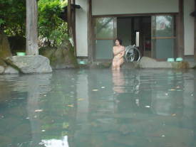 一段づつ降りる事が出来ました(^○^)するとおいちやんが混浴を貸し切りにしてあげると言って