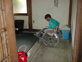 おいちゃんがお手伝いしましょうか←いらん一人で降りるけん、調度テスリがあったのでそれを持って