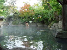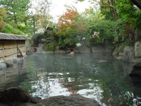 事にしました。少しぬるめですが体はポカポカ気分、紅葉を味合いながらの温泉♪
