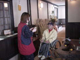 おねえちゃんの服装はモンペとチャンチャンコ←この様な姿で出迎えてもらえるとは心も落ち着く、いかにも故郷に