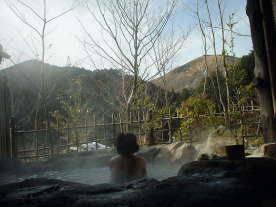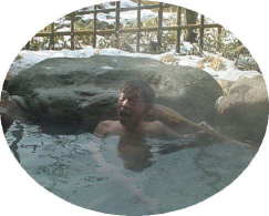 ここ筋湯温泉は町並みからすこし離れた所にあり、とっても静かで空気も美味しくて、なんとなんと、雪も積もっています。