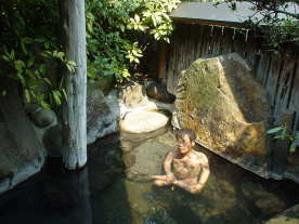そば処で有名な「草太郎庵」5つの風呂は全て貸し切り風呂、おっとんたちは貸し切り露天風呂に入る事にした。